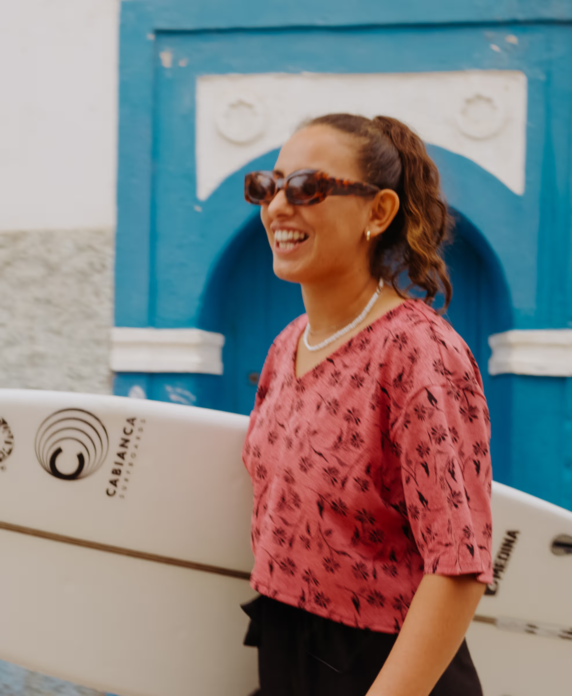 Just like Maryam Gardoum in Morocco, and Suri Barrera in El Salvador, who both inspire the young women in their countries to take up surfing as a means to create safe opportunity. Suri is the leader of Hijas del Mar (Daughters of the Sea), a non-profit to empower and unify local girls through surfing and community.